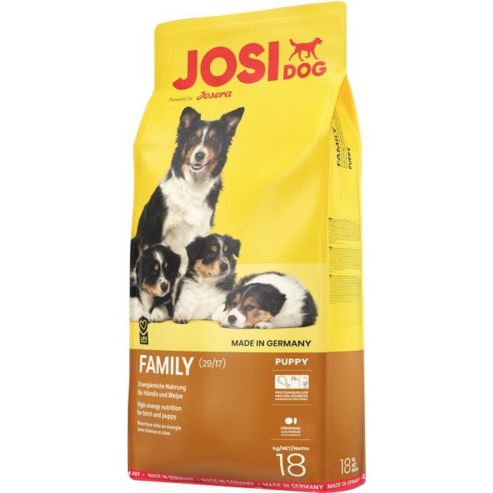 غذای سگ جوسرا مدل Family Plus غذایی خوشمزه برای مادران و توله سگ های آنها است و به سگ ها ، چه در دوران بارداری و چه در دوران شیردهی ، تمام مواد مغذی لازم را می رساندفرمول ویژه این غذا، نه تنها نیازهای خاص توله ها را در بر می گیرد بلکه از سه ماهه آخر بارداری شروع شده و تا آخر مراحل شیردهی قابل استفاده است .تکه های مغذی را می توان در شیر یا آب برای توله سگ نرم کرد تا به آنها در تغییر غذا از شیر به غذای جامد کمک کند.غذای جوسرا فمیلی برای سگ ها در دوران بارداری و شیردهی با انرژی بالا و عنصر ال کارنیتین فرموله شده است. مواد مغذی ارزشمند،رشد توله سگ را در رحم مادر تضمین می کند.